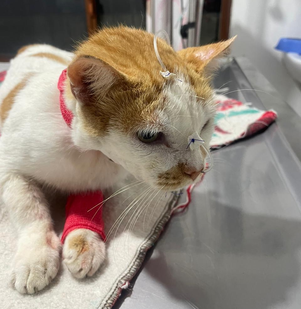 Snowy suffered a serious jaw injury that made eating nearly impossible. The WVS team performed two surgeries and used a feeding tube to help her recover. Now, Snowy is back to being her happy, fluffy self!